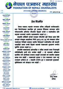 Read Moreनेपाल पत्रकार महासंघ झापाको प्रेस विज्ञप्ति