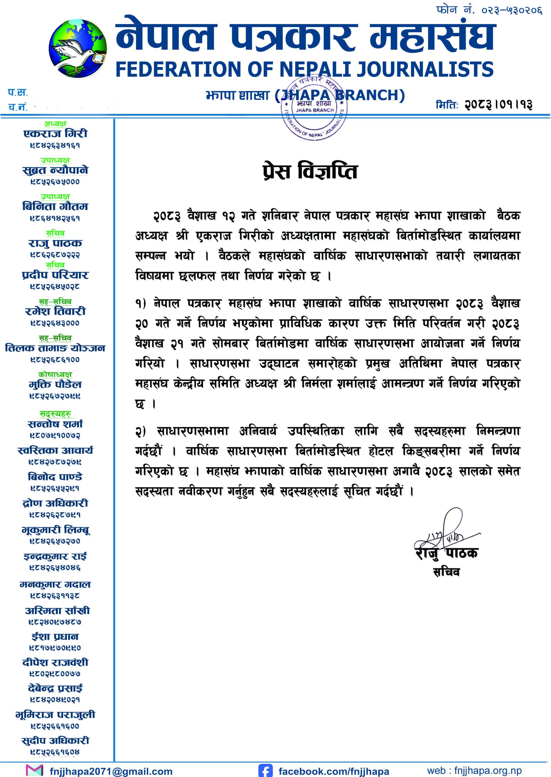 Home » Blog » वार्षिक साधारणसभाको मिति परिवर्तन सम्वन्धमा